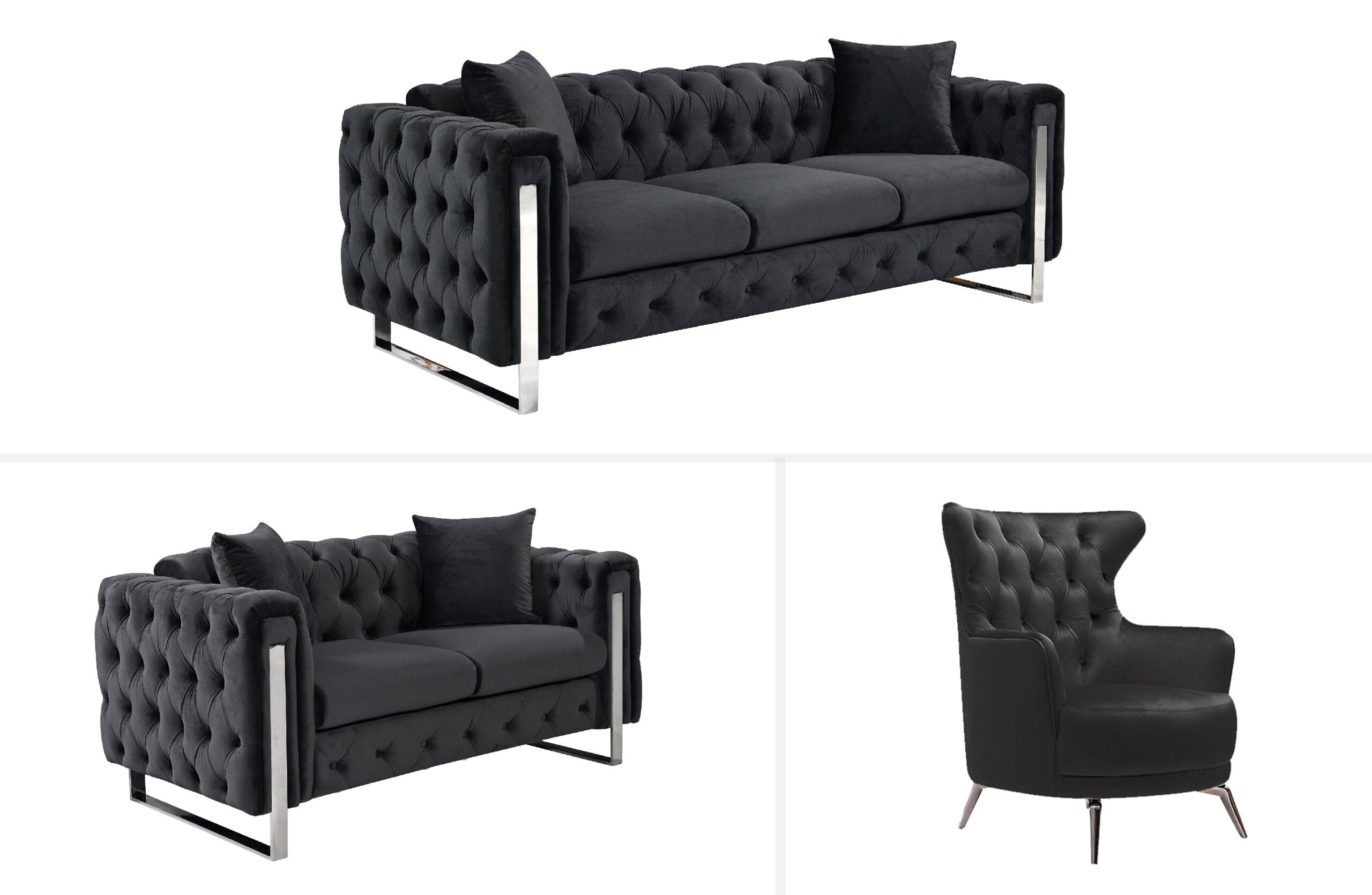 Madeline Range Lounge Set – Black Velvet – Silver Trims