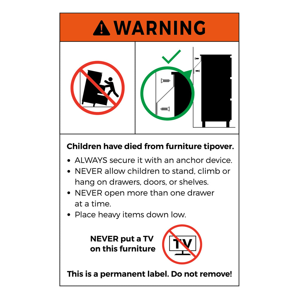 (b) never allow children to stand, climb or hang on drawers, doors, or shelves;